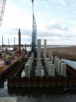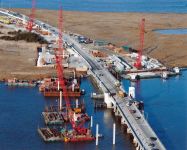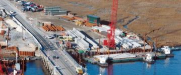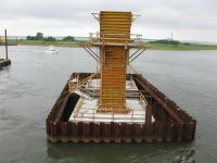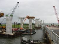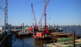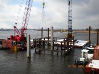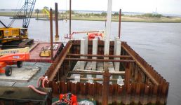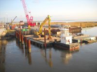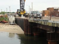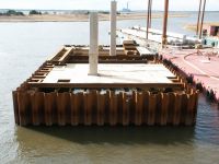 The second phase of a major replacement project on the Route 52 causeway between Somers Point and Ocean City, New Jersey replaced two existing lift bridges at the ends of the causeway with fixed spans and improved the approach roads. Peirce Engineering was engaged to design 69 cofferdams on land and in open water with depths up to 40 feet to accommodate pile cap construction. Cofferdams ranged in size from 30’W x 30’L to 30’W x 90’L. In addition to the cofferdams, Peirce Engineering designed 3 steel sheet pile access bulkheads, cantilevered and tiedback with tie rods and steel sheet pile deadmen, which were used for construction access and for off loading material barges.