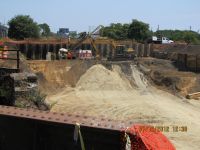 Peirce Engineering, prepared designs for the temporary excavation support systems required for staged reconstruction of Richmond Street, four Conrail bridges, 3 permanent retaining walls, and the Philadelphia Water Department Somerset Street Interceptor Chamber. Designs up to 27 feet high included battered and cantilevered soldier beam and timber lagging, tiedback soldier beam and timber lagging, and tiedback, steel sheet piling. Designs were complicated by the tight clearances between shoring, existing railroad tracks, and proposed structures, multiple construction stages, and Cooper E80 railroad surcharge loads.